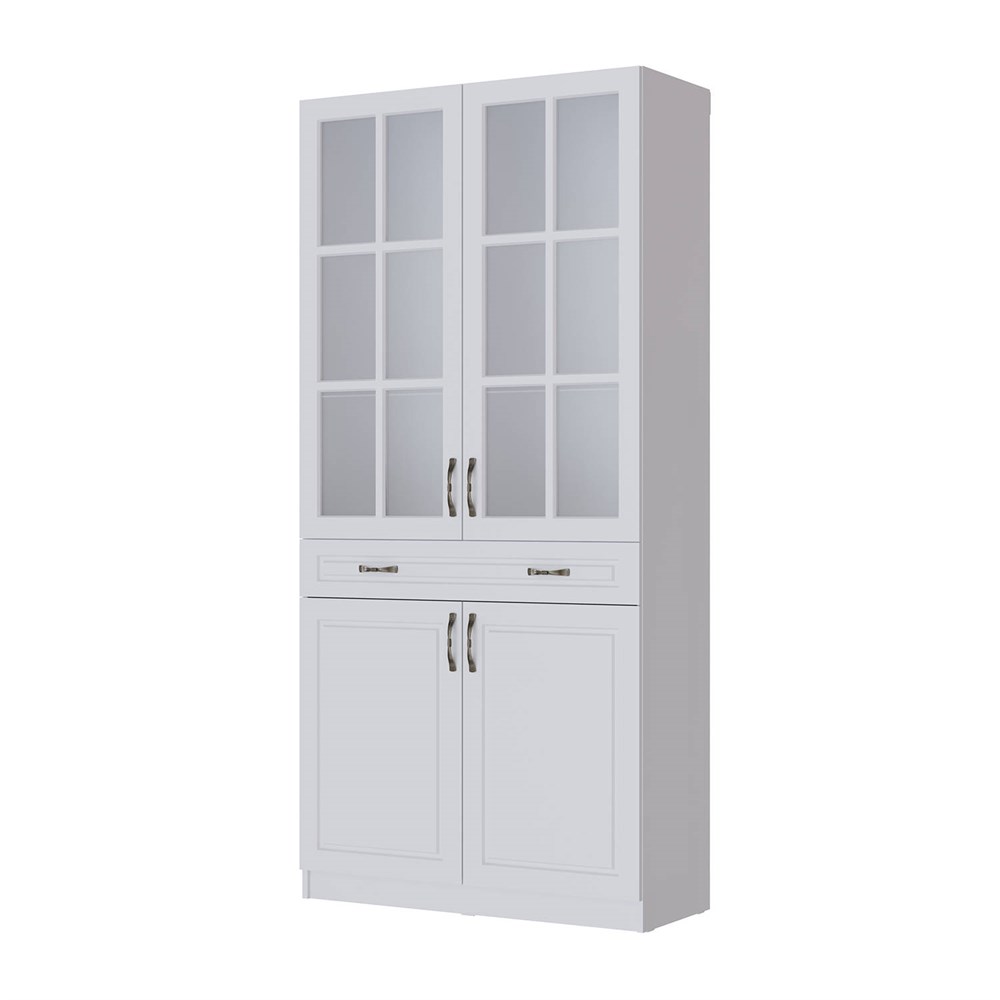 Гостиная Апполия Шкаф-витрина белый/белый дуб (МФ)
