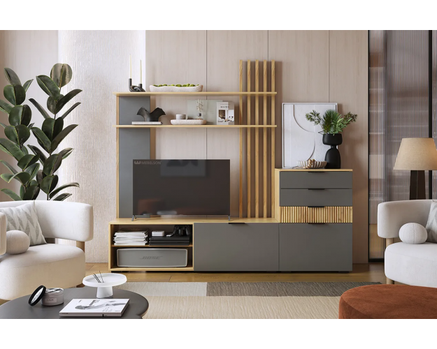 Гостиная Бери К3 дуб крафт золотой / графит состоит из 8 модулей: