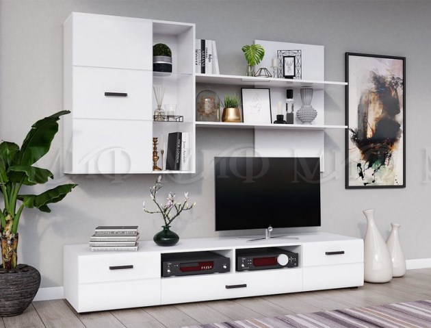 Изысканная, белоснежная с приятным блеском гостиная, несомненно украсит собой любую квартиру или дом. В гостиной есть все необходимые элементы для красивого оформления комнаты.