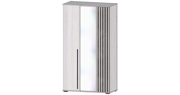 Трехстворчатый шкаф с современными элементами декора в виде реек на фасаде.