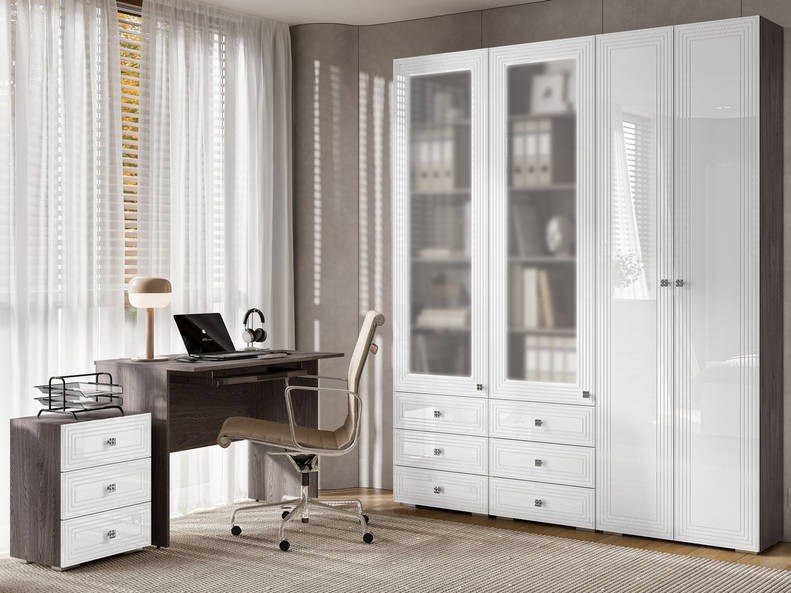 Модульная система "Самира" сочетает в себе стиль, функциональность и качество. Белый глянцевый цвет в сочетании с аккуратной фрезеровкой фасадов выглядят очень естественно, элегантно и подходят под любой современный стиль. Модульная система "Самира" легко впишется в любой интерьер современной квартиры или дома.