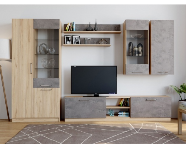 Модульная гостиная Лофт дуб сонома / серый состоит из 9 модулей: