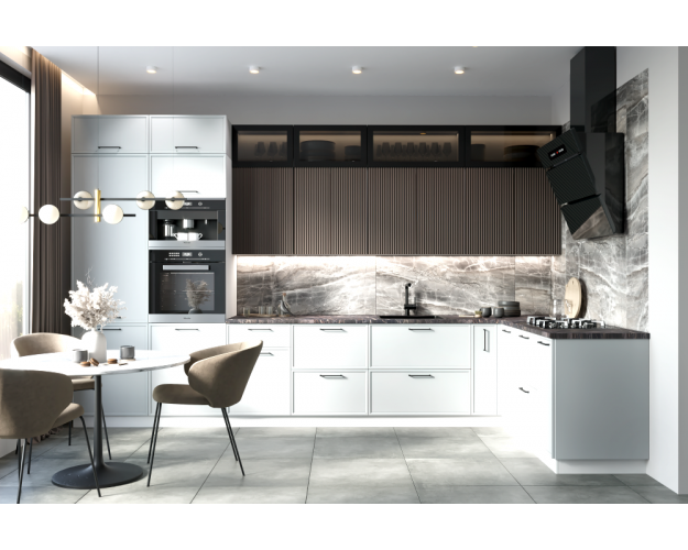 Цена указана за весь проект как на первом фото, без учета столешницы, мойки и фартука (Эти товары выбираются и комплектуются отдельно)