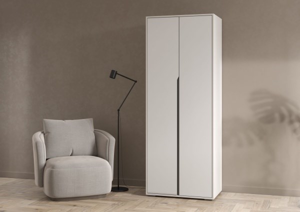 Лаконичный 2-х створчатый шкаф с горизонтальной штангой и двумя полками.