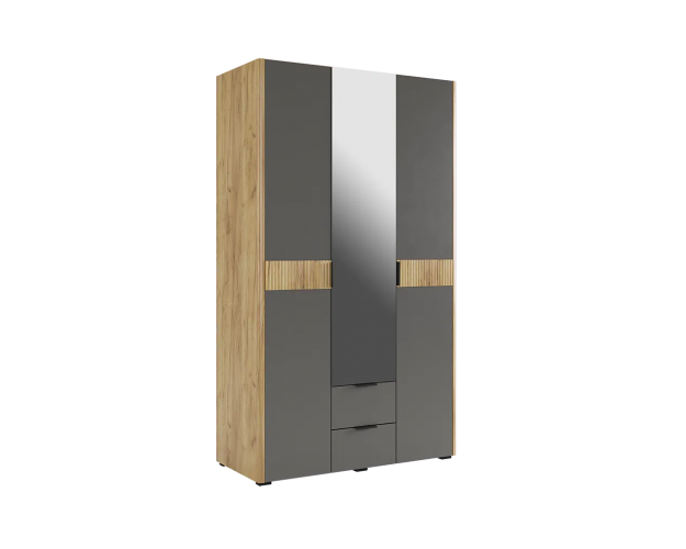 Шкаф трехдверный с зеркалом Адам дуб крафт золотой / графит ( в наличии) (М-С)