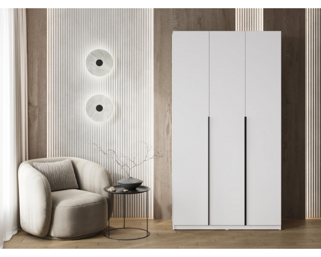 Шкаф трехстворчатый 1200 Бруно белый гладкий, кашемир (МК)