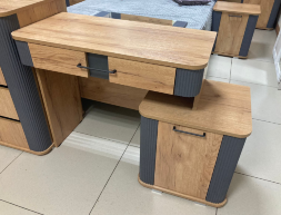 Компактный и выразительный, туалетный стол Ольга 2 сочетает тёплый оттенок дуба золотистого с глубоким антрацитом, создавая стильный акцент в любой спальне. Удобная столешница и вместительный выдвижной ящик позволяют разместить всё необходимое — от косметики до украшений.